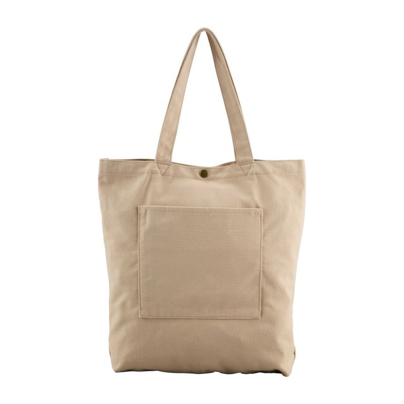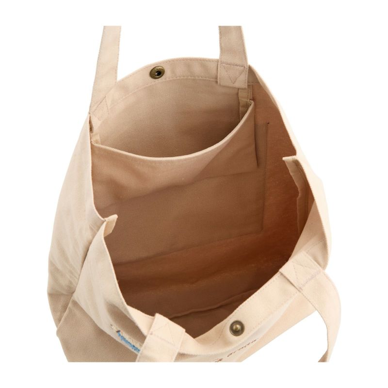 軽くて丈夫な綿の帆布生地。絵柄部分が刺繍になっています。背面はポケット仕様。お買い物やお出かけ、ご旅行などに最適!小脇に抱えられるスリムタイプなので通勤通学用にもおすすめ。A4サイズが入ります。