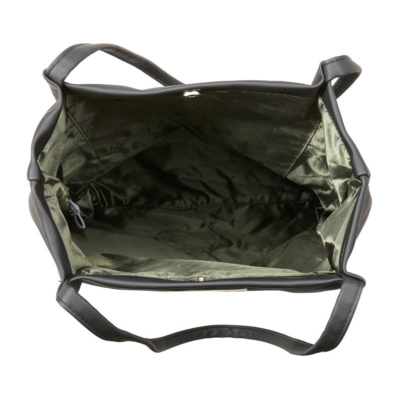 デザインだけでなく、実用性も抜群。A4サイズが入る大きさで、マチも12cmと程よく広め。肩に掛けやすいよう長めに設計されたハンドルに、開口部は片手で簡単に開閉できるマグネットボタン仕様。内装には小物を収納できるフリーポケット付きです。