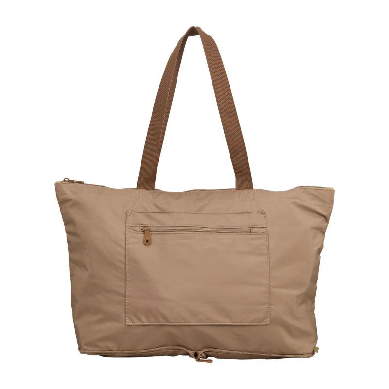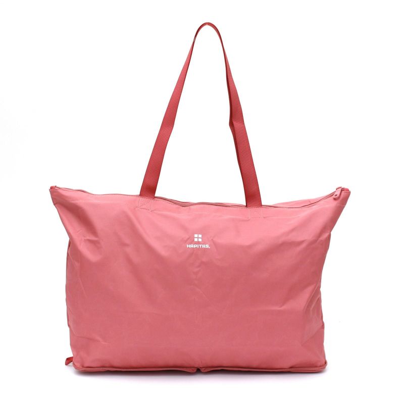 普段使いから旅行用まで、幅広く使える軽いトートバッグ。使わないときはコンパクトに折りたたんでスーツケースやカバンの中に。使いたいときにぱっと広げて使えます。スーツケースのキャリーバーに通せるので旅行の際はとっても便利。旅行用だけでなく、普段のエコバッグやサブバッグとしても大活躍。