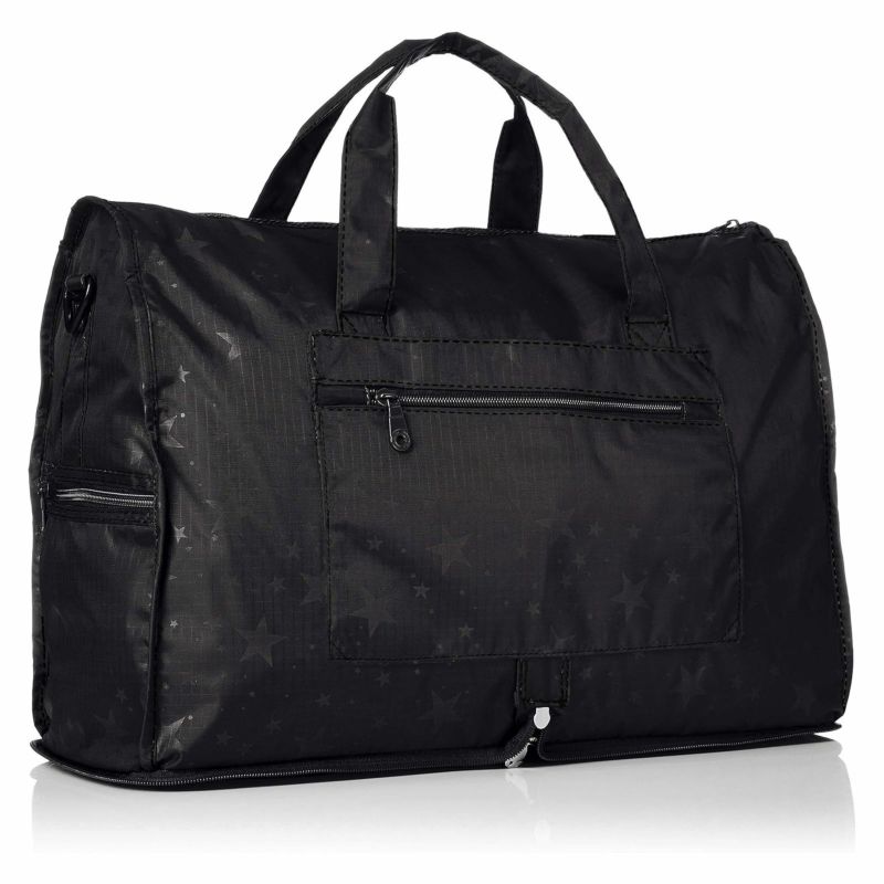 使わない時は折りたたんで小さく収納できるボストンバッグ。ファスナーを開けて広げるだけでバッグに早代わり!スーツケースのキャリーバーに装着することが可能です。(裏面にキャリーバー通しがあります。)持ち運びに便利なショルダーベルト付き。