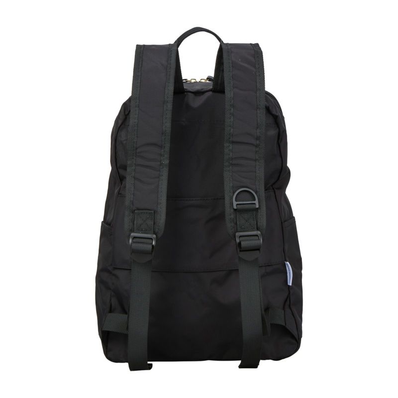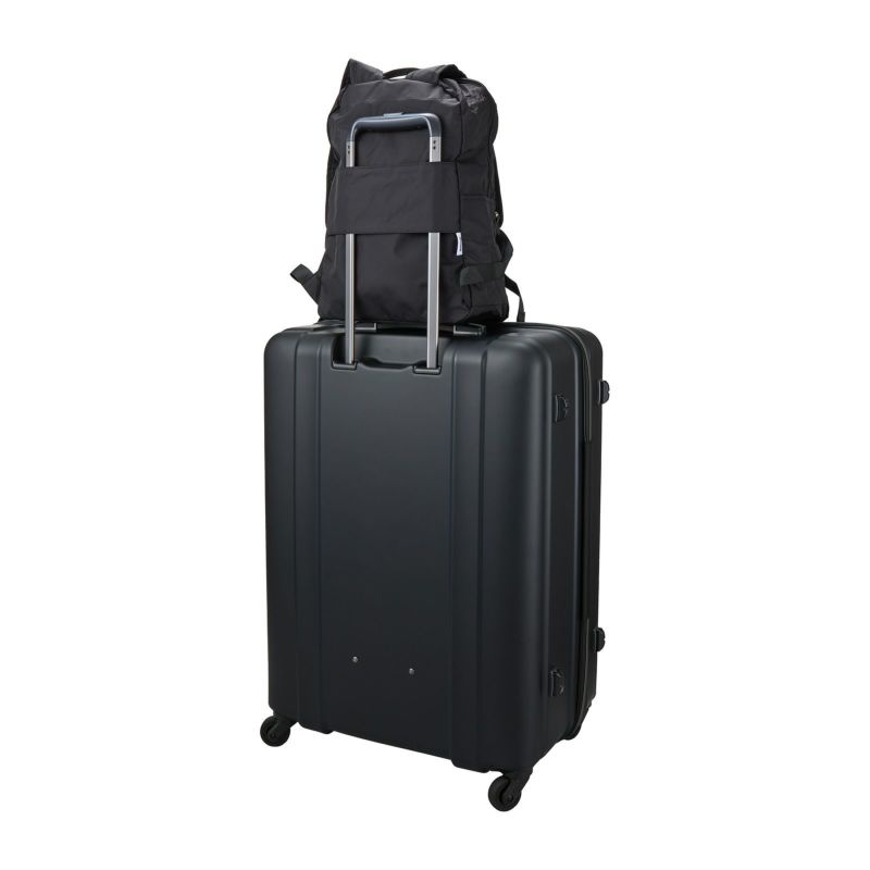 リュック背面はスーツケースのキャリーバーに通せる仕様になっているので、旅行時に便利。
