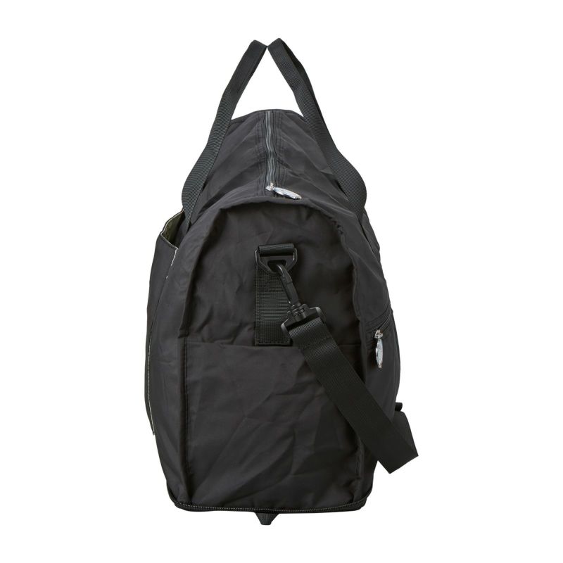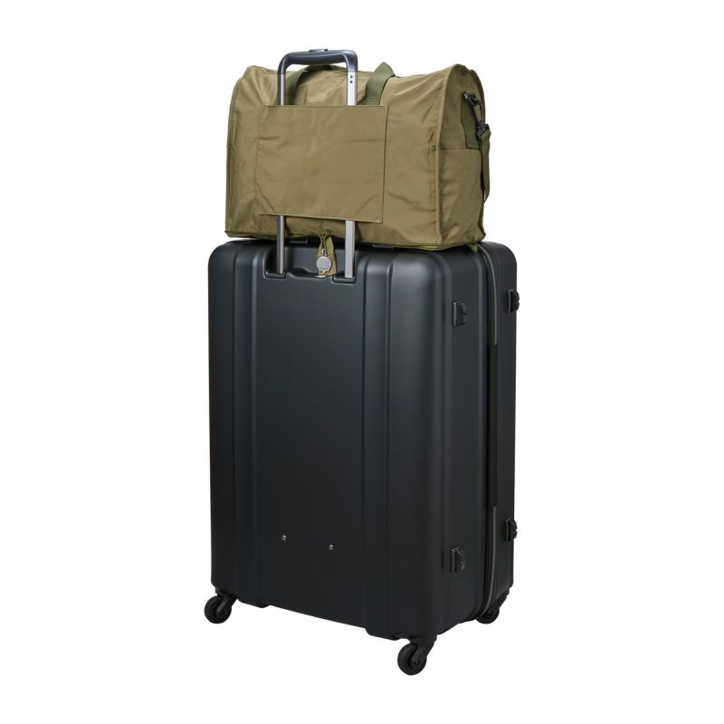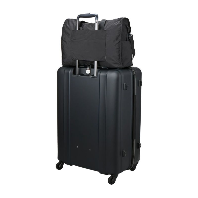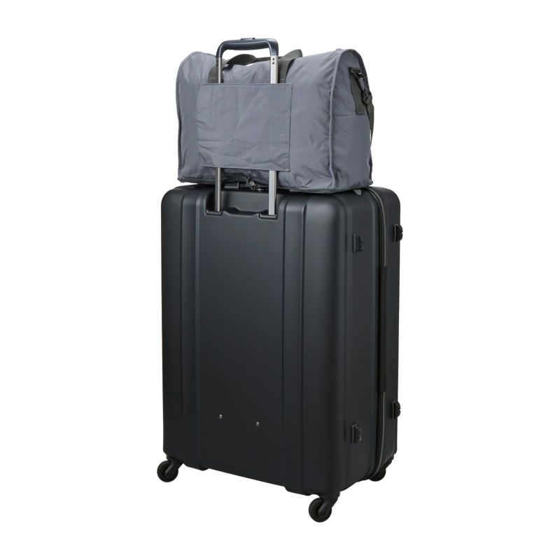 普段使いから旅行用まで、幅広く使える軽いボストンバッグ。使わないときはコンパクトに折りたたんでスーツケースやカバンの中に。使いたいときにぱっと広げて使えます。バッグ背面にはスーツケースのキャリーバーに通せるようにキャリーバー通しが付いているので、旅行の際はとっても便利。
