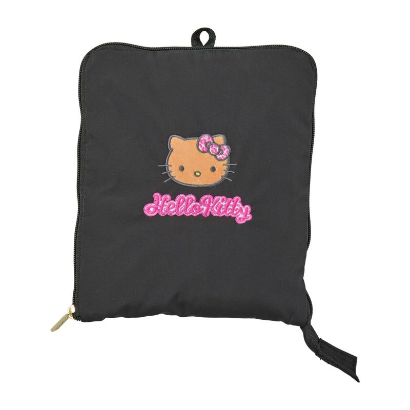 日焼けデザインのハローキティがピンクのヒョウ柄リボンをつけたお顔のワンポイント刺繍がかわいい。ボストンバッグのブラックの生地に映えるピンクのロゴも大人かわいいデザインです。内装はヒョウ柄です。