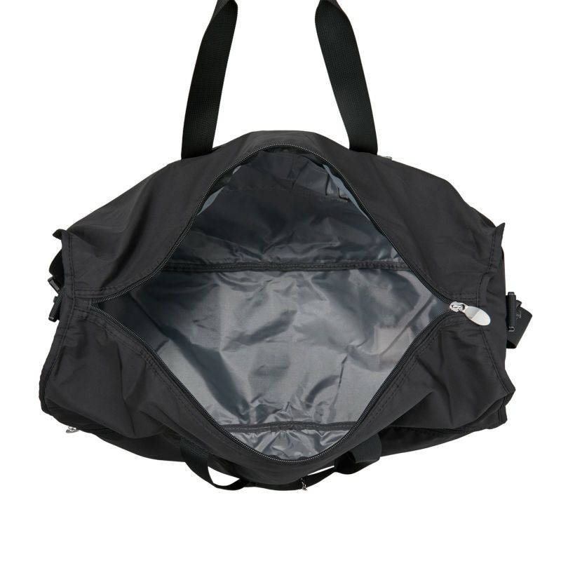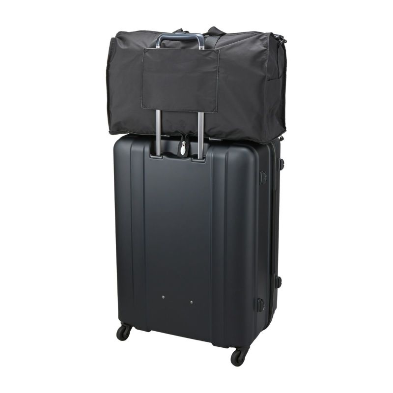 使わないときはコンパクトに折りたたんでスーツケースやカバンの中に。使いたいときにぱっと広げて使える折りたたみボストンバッグ。バッグ背面にはスーツケースのキャリーバーに通せるようにキャリーバー通しが付いているので、旅行の際はとっても便利。