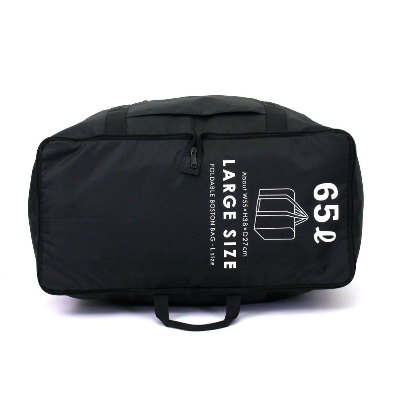 大容量65Lの大型ボストンバッグ。長期のご旅行や、大荷物の運搬、アウトドアに持っていくなど様々なシーンで使えます。使わないときはコンパクトに折り畳めます。背面にキャリーバー通しが付いているので、スーツケースのキャリーバーに通して運ぶことができ大変便利。