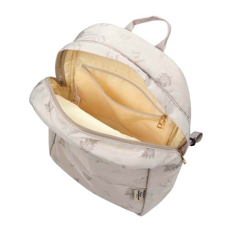 バッグ前面や背面、内装にはポケットが付いているので、小物収納に便利。前面ポケットのファスナートップはスヌーピーの形をしていて可愛い。