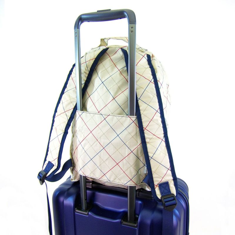 折りたたみ式で、旅行バッグに入れて持ち歩きも便利なリュック。スーツケースに載せてもズレ落ちない「キャリーオン機能付」なので、旅行時のお土産入れやサブバッグに便利です。 もちろん通勤や通学、お散歩やハイキングなどの普段使いもOK!