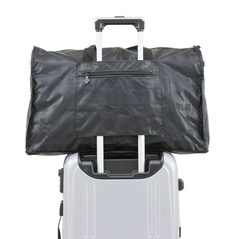 キャリーオンバッグ サブバッグ 短期旅行 トラベル 折りたたみ ボストンバッグ Lサイズ チェッカーブラック スターリー柄 ハピタス H0004