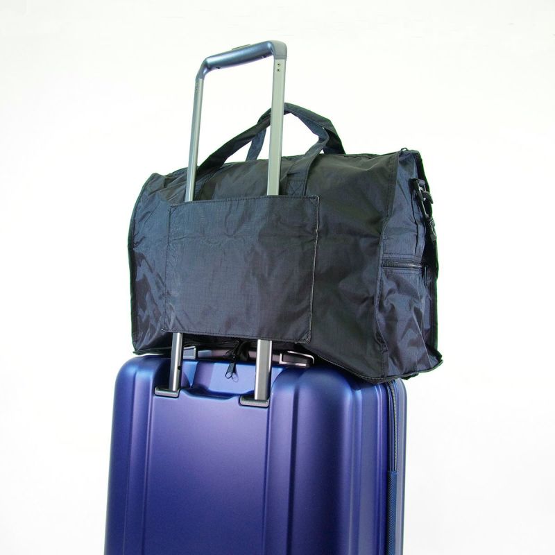 使わないときはコンパクトに折りたたんでスーツケースやカバンの中に。使いたいときにぱっと広げて使えます。スーツケースのキャリーバーに通せるので旅行の際はとっても便利。エコバッグやサブバッグとしても大活躍。 旅行帰りのお土産バッグとしても便利です。ファスナーで閉じられるので、飛行機の荷物入れに入れる際も中身がこぼれず安心。