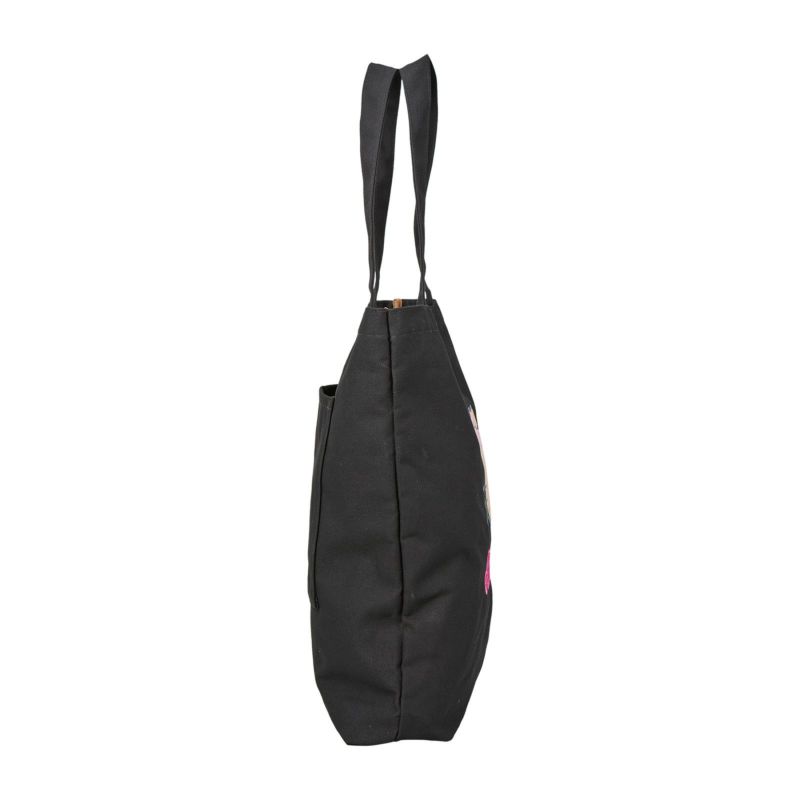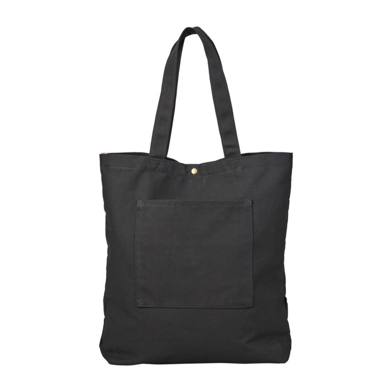 デザインだけでなく、実用性も抜群。軽くて丈夫な帆布素材でA4サイズが入る大きさです。開口部はマグネットボタン仕様。内装は小物を収納できるポケット付きで、背面にも大き目のポケット付きです。