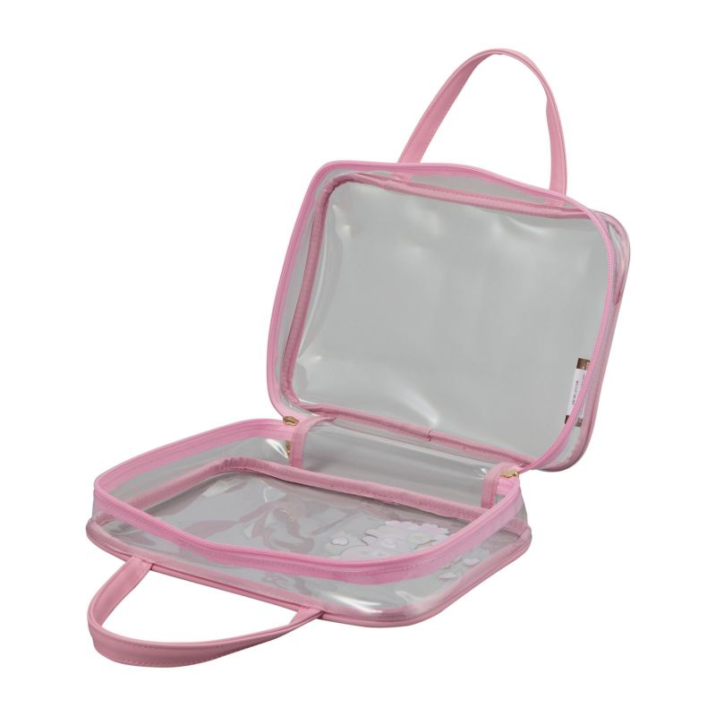 外装のクリアポーチも単体でポーチとして使うことができます。中身が見えるため、スーツケース内の荷物の整理にもおすすめ。持ち手が付いているので、旅先で洗面用具などを入れて持ち運ぶ際にも便利です。