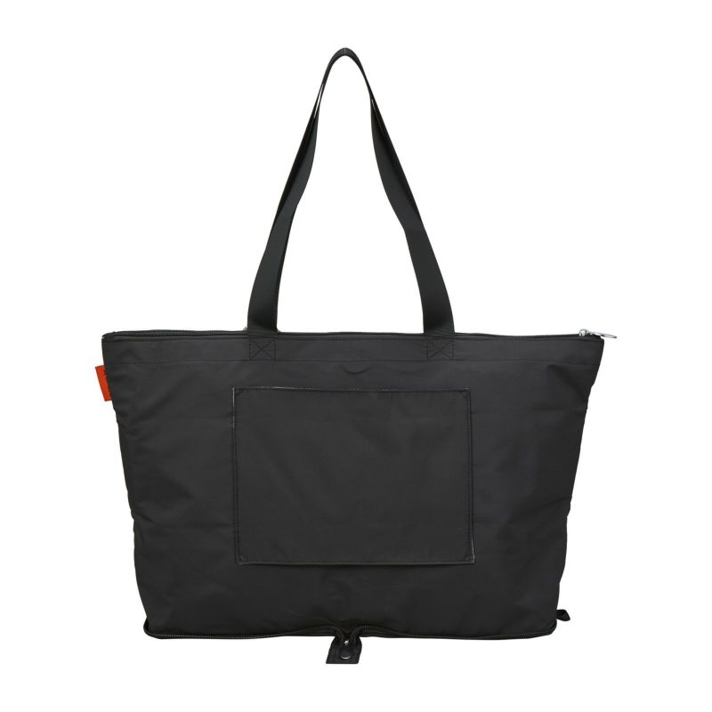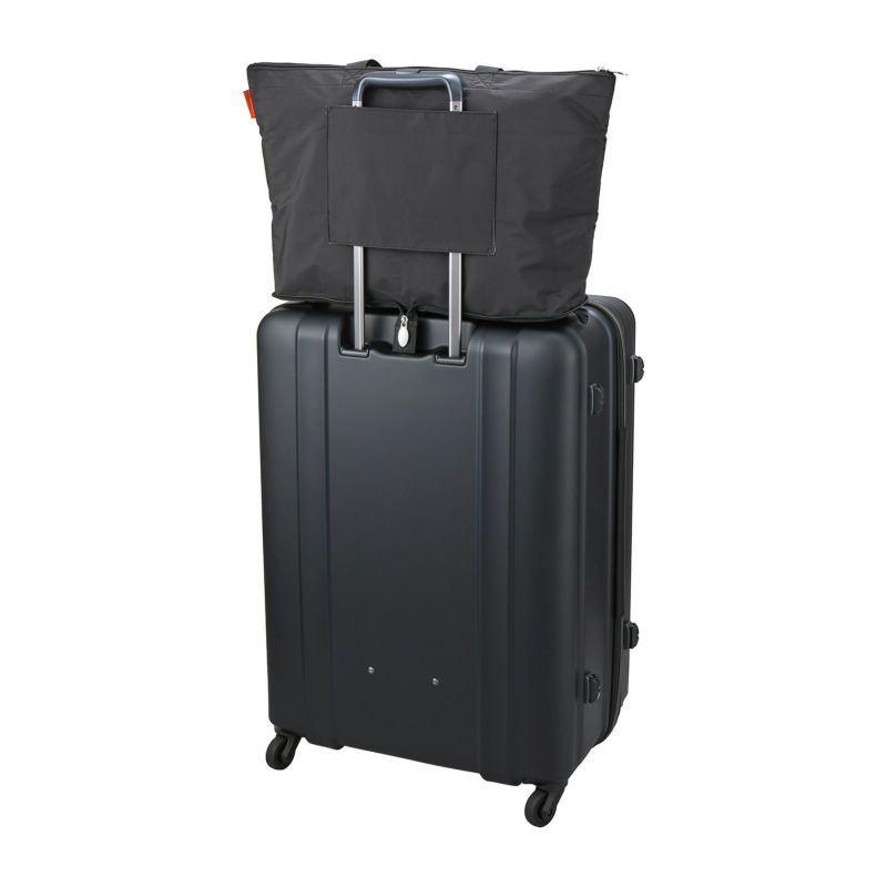 普段使いから旅行用まで、幅広く使える軽いトートバッグ。使わないときはコンパクトに折りたたんでスーツケースやカバンの中に。使いたいときにぱっと広げて使えます。バッグ背面にはスーツケースのキャリーバーに通せるようにキャリーバー通しが付いているので、旅行の際はとっても便利。
