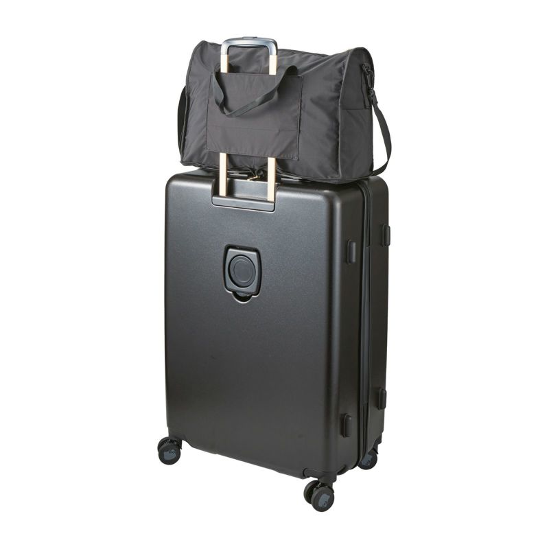 普段使いから旅行用まで、幅広く使える軽いボストンバッグ。使わないときはコンパクトに折りたたんでスーツケースやカバンの中に。使いたいときにぱっと広げて使えます。バッグ背面にはスーツケースのキャリーバーに通せるようにキャリーバー通しが付いているので、旅行の際はとっても便利。