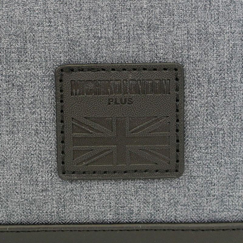 前面にMICHIKO LONDON PLUSのワンポイント付き。A4ファイル対応サイズで肩掛けショルダーベルトが付属しています。内装は1層タイプです。