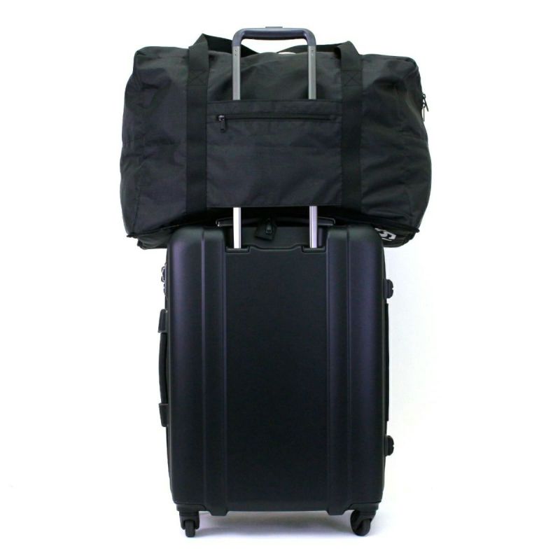 大容量65Lの大型ボストンバッグ。長期のご旅行や、大荷物の運搬、アウトドアに持っていくなど様々なシーンで使えます。使わないときはコンパクトに折り畳めます。背面にキャリーバー通しが付いているので、スーツケースのキャリーバーに通して運ぶことができ大変便利。