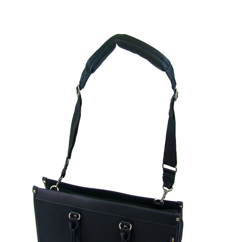 ビジネスバッグ用ショルダーベルト。フックがついているのでお手持ちのビジネスバッグのショルダーベルトと交換してお使いいただけます。ベルトのパッド部分にはクッション性のある素材を採用することにより、滑り防止で肩にしっかりとフィット。緩やかなカーブのデザインなのもフィット感をアップさせます。パッドは幅広設計になっています。肩への 圧力も和らげ負担も軽減。ベルトは長さ調節可能です。