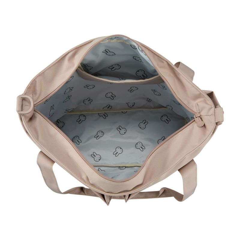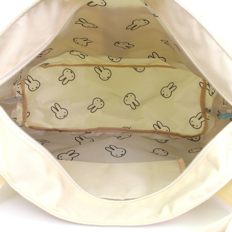 バッグ前面に刺繍されたミッフィーのフェイスや、ひょっこりと覗くミッフィーのタグがかわいい!内装もミッフィーの絵柄で、ファスナートップもミッフィーの顔の形をしており、細部まで可愛さにこだわっています。普段使いにも旅行のお供にもオススメです。