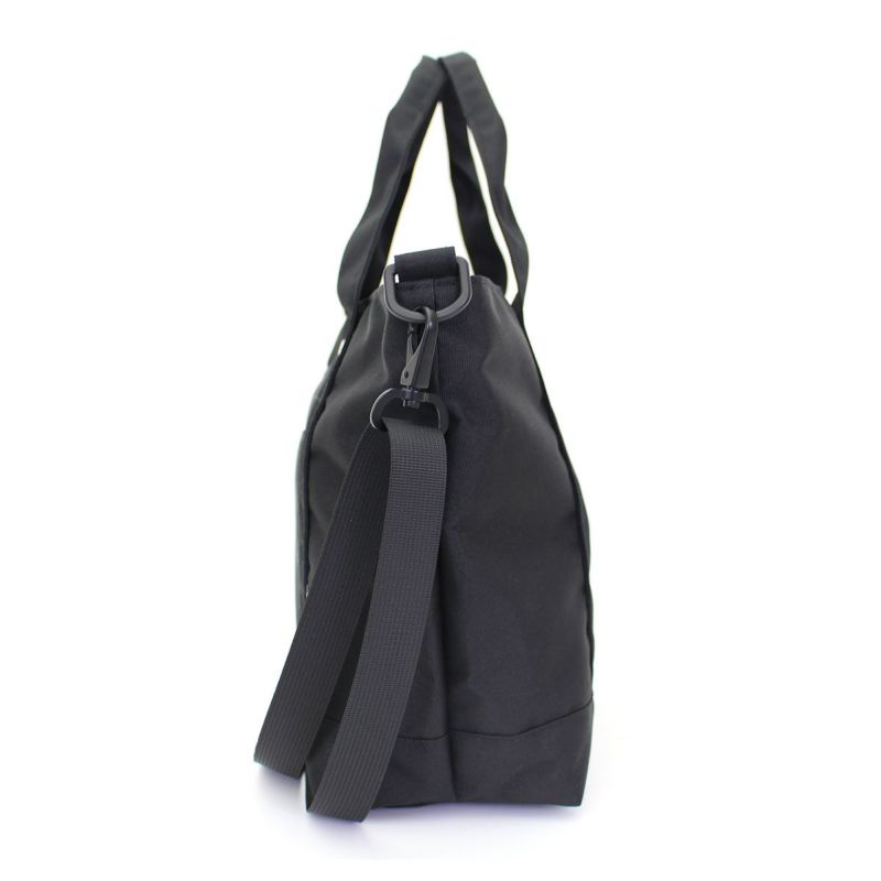 メインバッグとしてオススメなサイズの横型トートバッグ。取り外し可能なショルダーベルトが付いているので肩掛けにして使うこともできます。マチも広く、容量も約10Lと収納力も抜群です。 バッグ前面にはポケットが付いているので、小物収納に便利。内装にもポケットがついているので、荷物を仕分けて収納することができます。
