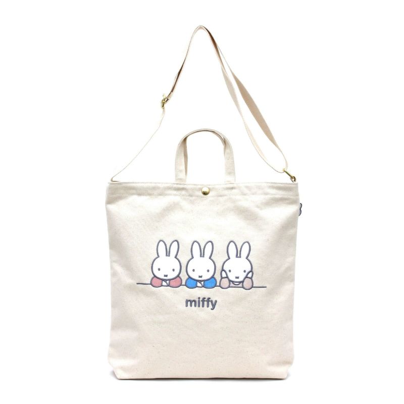 ミッフィーの2WAY帆布トートショルダーバッグ。軽くて丈夫な綿の帆布生地。長さ調節可能なショルダーベルト付きなので斜め掛けも可能(ショルダーベルトは取り外しできません)。お買い物やお出かけはもちろん、A4サイズが入るので通勤通学、習い事等にもおすすめです。開口部はマグネットボタン(B270、B271はスナップボタン仕様)で留めることができます。