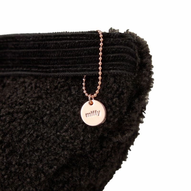 デザインにもこだわりが!バッグ前面には「Dick Bruna」の文字があしらわれており、背面にはミッフィーのお顔のワンポイント刺繍があります。内装もミッフィーのお顔の総柄。さらに、miffyと刻印されたチャーム付き。細部までミッフィーデザインにこだわっています。落ち着いた色合いのブラックとアイボリーの2色展開です。