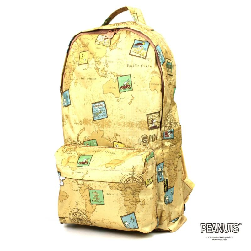 SNOOPY PEANUTS キャリーオンバッグ デイパック サブバッグ 旅行 トラベル 折りたたみリュック スヌーピー マップ柄 ハピタス HAP0112