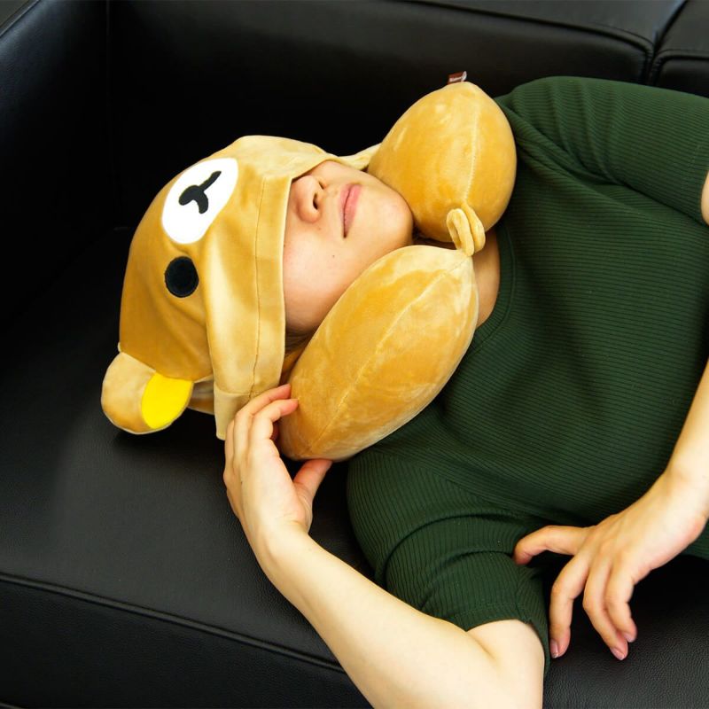 首を安定させて楽な姿勢を保ち、快適な睡眠をサポートしてくれるネックピロー。長時間の使用でも快適な肌触りのいい生地を使用。枕の中身は低反発素材を使用しているので使い心地バツグン!さらに、リラックマやコリラックマのフードがついているので目元あたりまで寝顔を隠すこともできます!飛行機・電車・バス・車など、乗り物での移動時間が長い方は一つ備えておくと安心です。