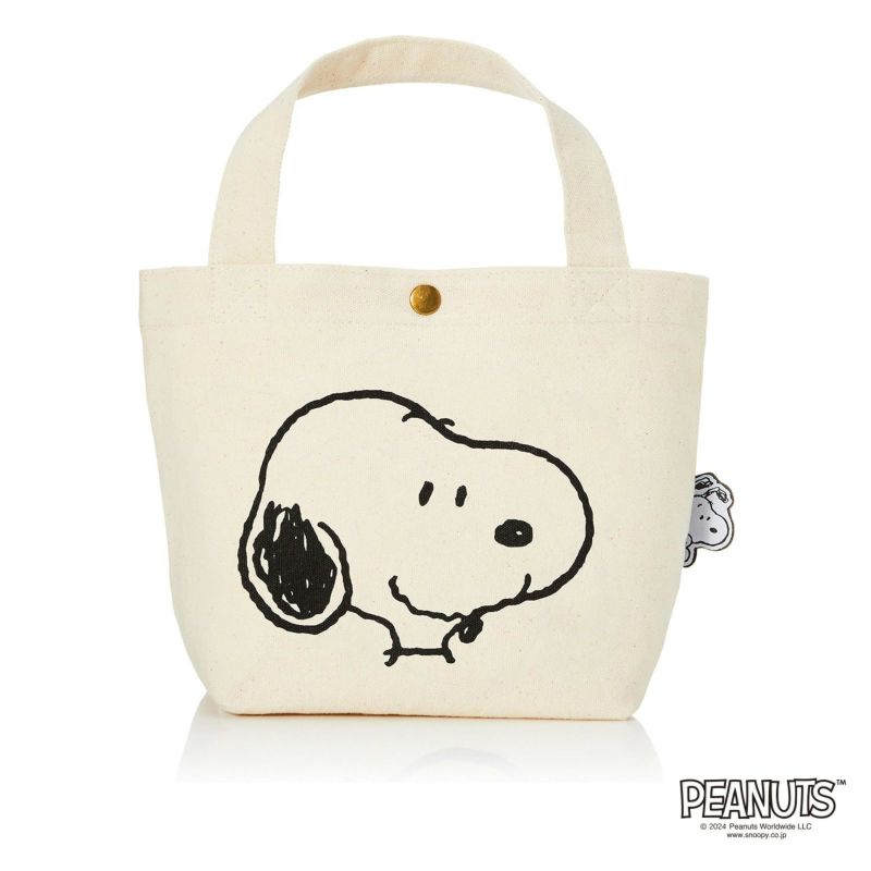 スヌーピーのかわいい帆布ミニトートバッグ。お昼のランチや、スーパー、コンビニでのちょっとしたお買い物に。財布やスマートフォンをまとめて入れるときにちょうど使いやすいサイズに仕上げました。プレゼントにオススメのアイテムです。