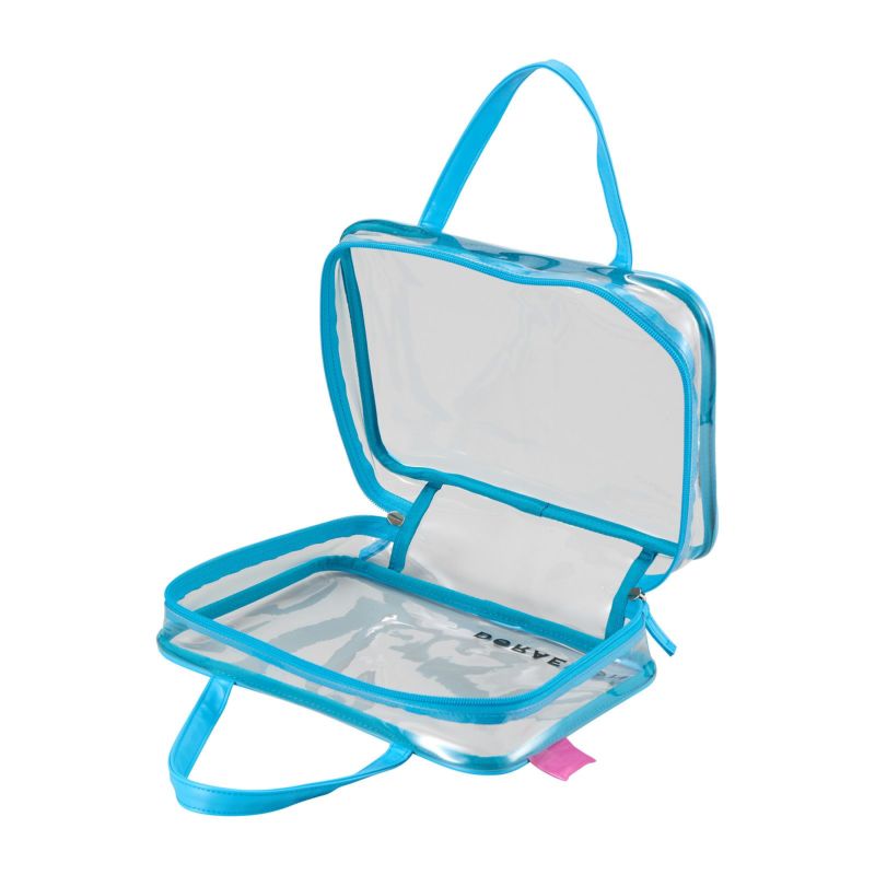 外装のクリアポーチも単体でポーチとして使うことができます。中身が見えるため、スーツケース内の荷物の整理にもおすすめ。持ち手が付いているので、旅先で洗面用具などを入れて持ち運ぶ際にも便利です。