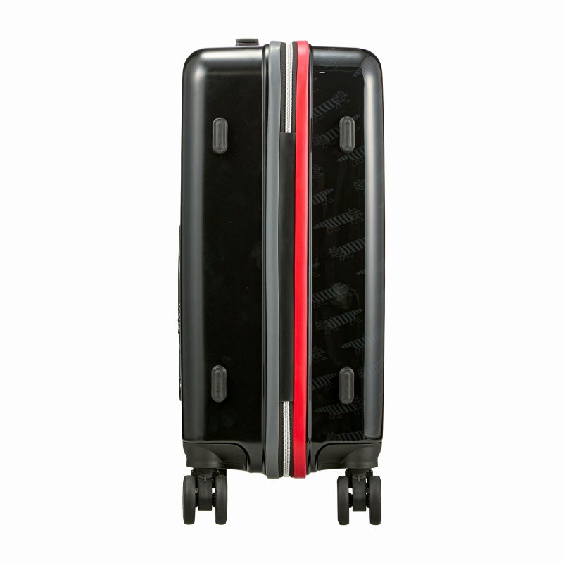 真っ赤な内装はファスナートップがベイビーマイキーになっており、細部までこだわった造りです。フタ側の内装はファスナーで閉じられるため、開閉の際に荷物がこぼれる心配がありません。