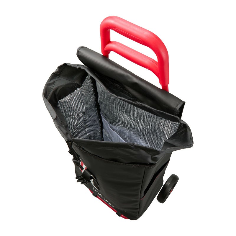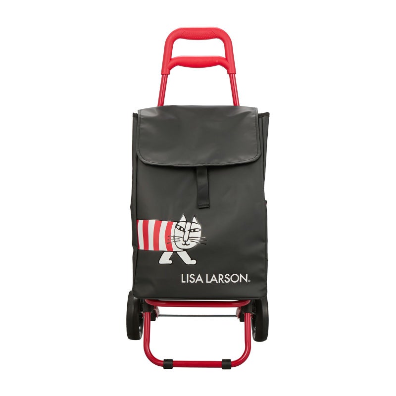 保冷&保温機能付きのショッピングカート。スウェーデンの世界的陶芸家リサ・ラーソンの、日本で一番有名な北欧の猫のキャラクター「マイキー」デザイン。ハンドルとキャスターには抗菌加工が施されています。