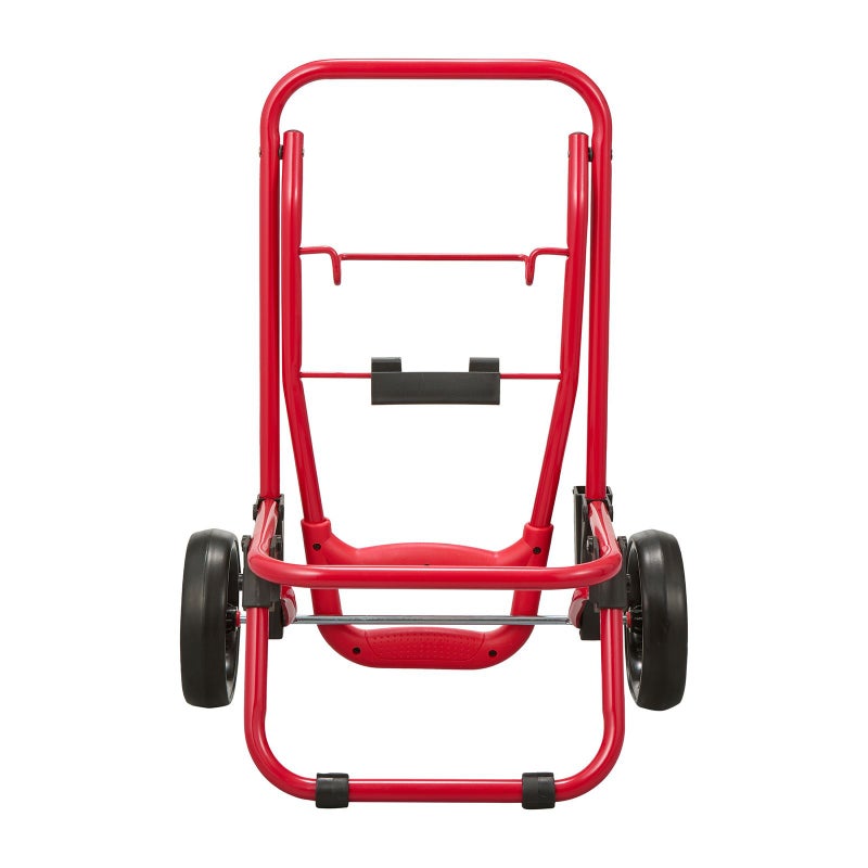 背面には取り付けフックがついており、お店のショッピングカートに掛けられて買い物中も邪魔になりません。カサ入れポケット付きなので、荷物になる傘をショッピングカートに収納して一緒に持ち運ぶことができます。また、折りたたみ可能なので、コンパクトに収納可能。