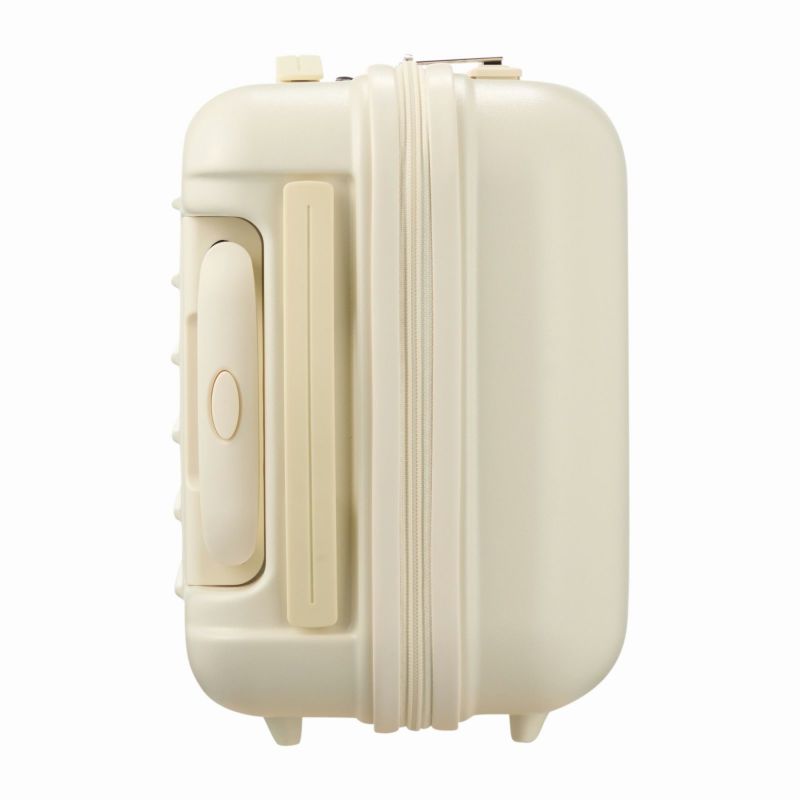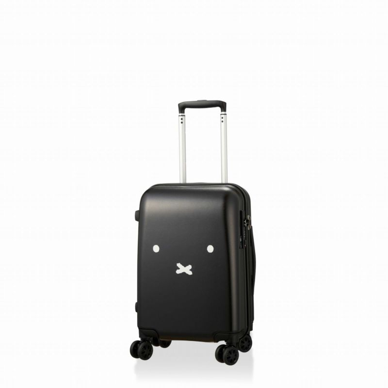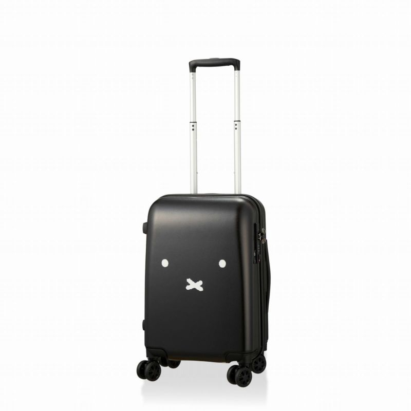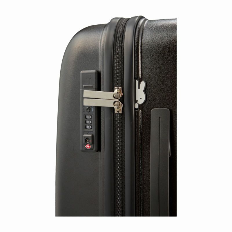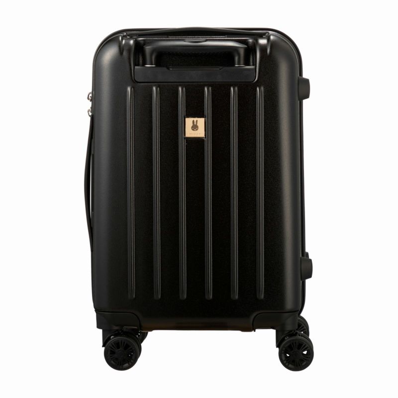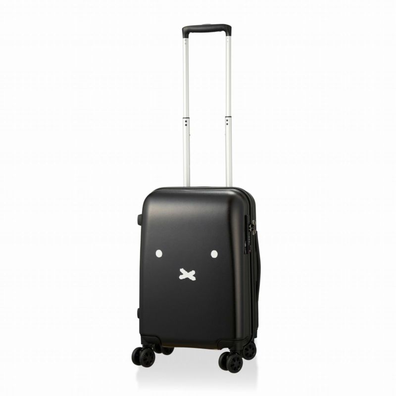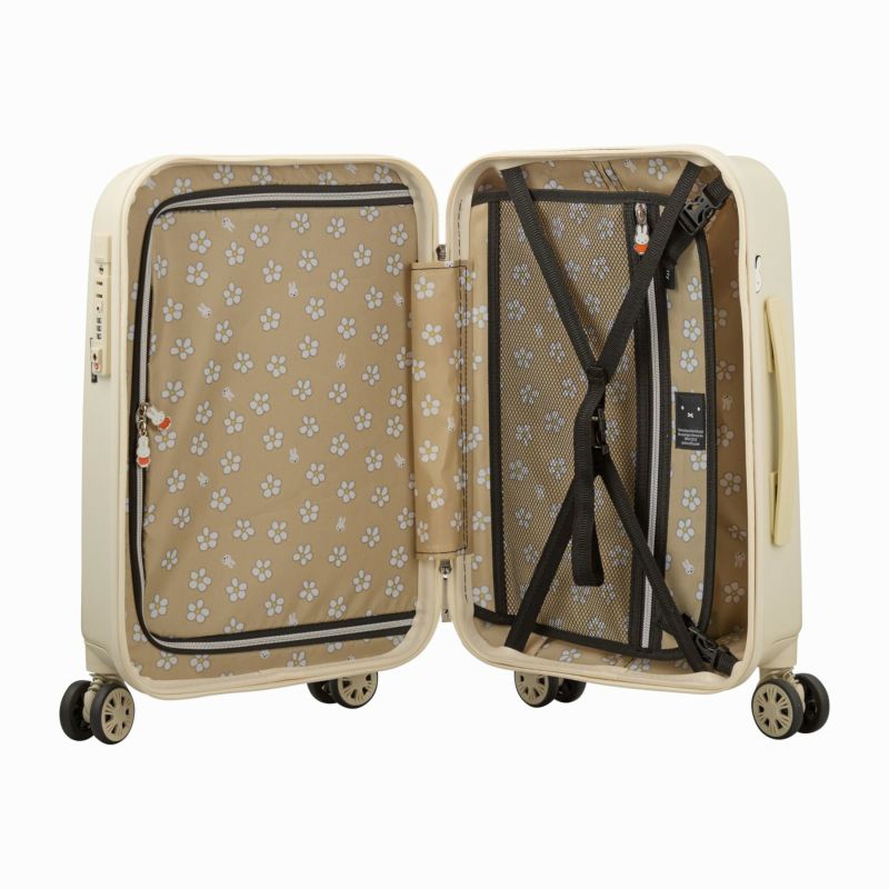 スーツケースのボディ前面にプリントされたミッフィーのお顔が可愛い!ボディ背面にはミッフィーのロゴプレートが付いており、側面にはひょっこりとのぞくミッフィーのタグがついています。内装はベージュの生地にミッフィーとお花の総柄デザイン、そして内装ファスナートップはミッフィーの形をしていて可愛さ満載!