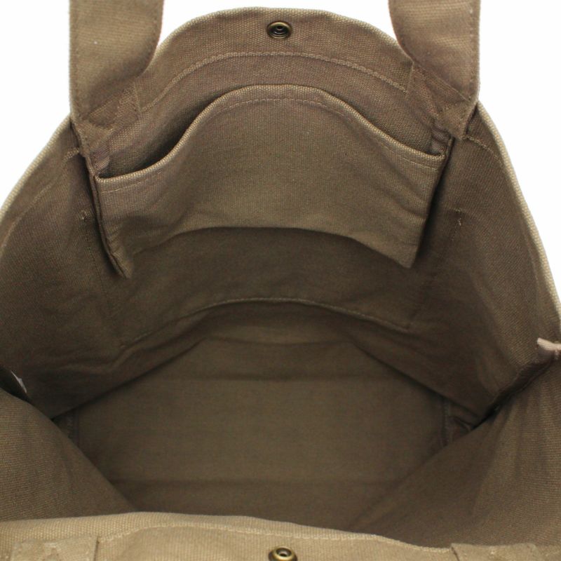 軽くて丈夫な綿の帆布生地。背面はポケット仕様です。お買い物やお出かけ・ご旅行などに最適!小脇に抱えられるスリムタイプなので通勤通学用にもおすすめ。A4サイズが入ります。