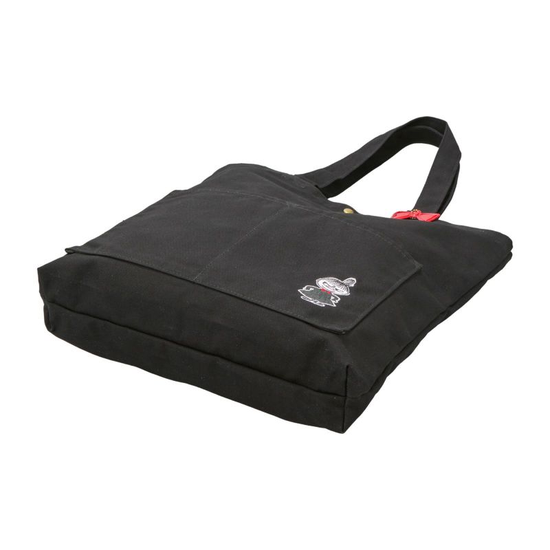 「MC41.モノトーン リトルミイ」は黒地にリトルミイのワンポイント刺繍が映えるデザイン。バッグ内装は黒と白のストライプでモノトーンな雰囲気を感じさせます。年代問わず使える落ち着いたデザインです。リトルミイの赤いリボンの形をしたリフレクトチャーム付き。