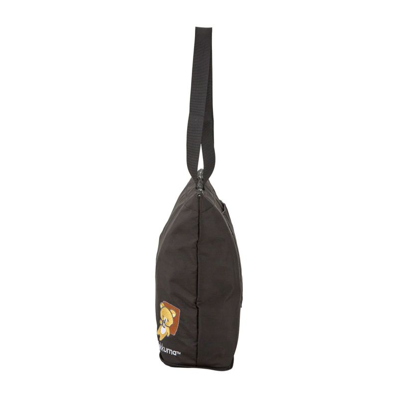 バッグ全体は無地でシンプル。バッグ前面右下と底面(折りたたんだ状態では正面の時)には、カフェで飲み物を飲みながらリラックスしているリラックマが描かれています。