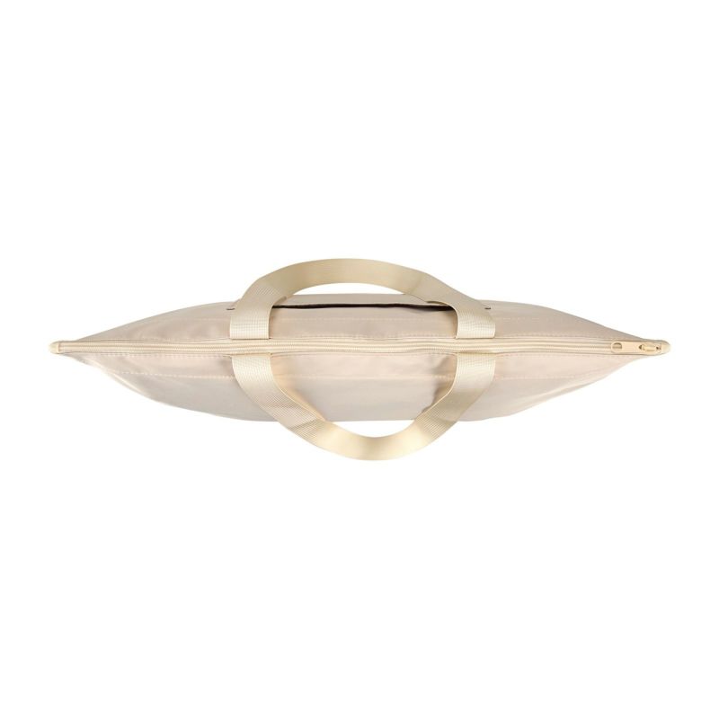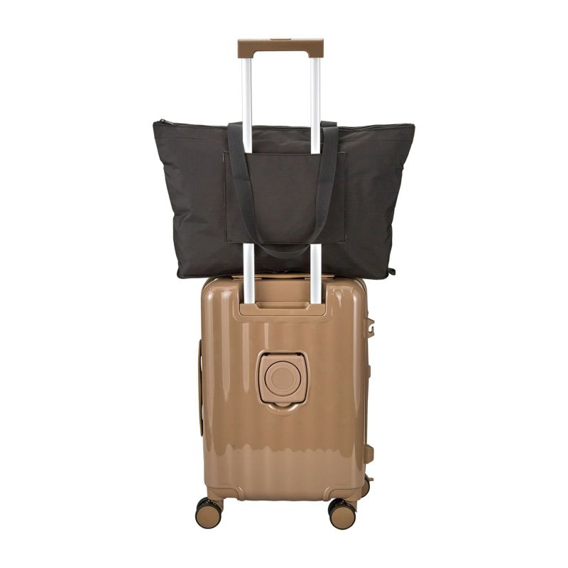普段使いから旅行用まで、幅広く使える軽いトートバッグ。使わないときはコンパクトに折りたたんでスーツケースやカバンの中に。使いたいときにぱっと広げて使えます。バッグ背面にはスーツケースのキャリーバーに通せるようにキャリーバー通しが付いているので、旅行の際はとっても便利。