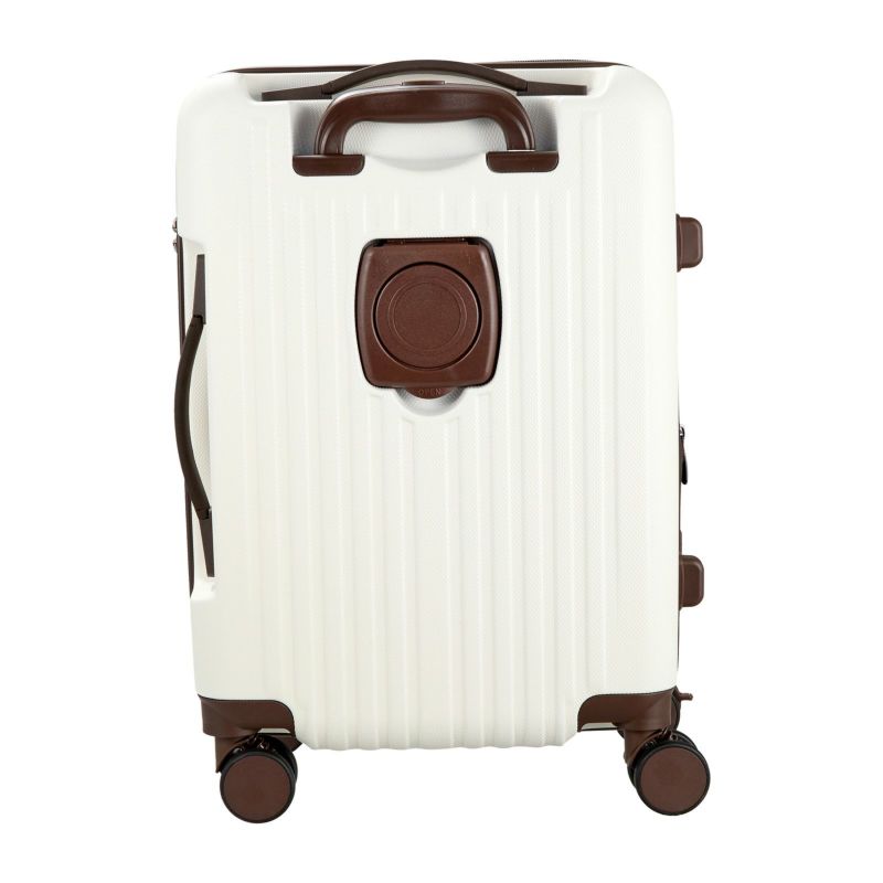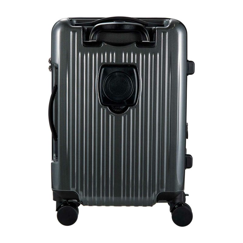 背面にはカップホルダー付きなのでペットボトル等を簡単に収納してスーツケースを持ち歩くことができます。側面にはスライド式の荷物フックが付いているので買い物袋等を掛けることもできます。