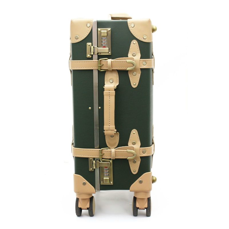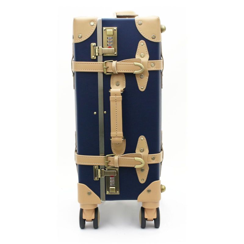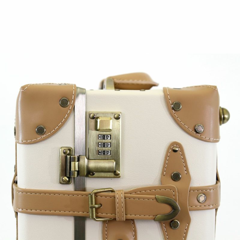 クラシカルなコンビカラーのユーラシアトランク。合皮で扱いやすい軽量タイプ。軽くて傷や汚れにも強く、雨の日の使用も安心。ダブルキャスターで安定した走行が可能。レトロなダイヤルロック錠、ポケット付の内装などオシャレさと機能性を両立したユーラシアトランクです。