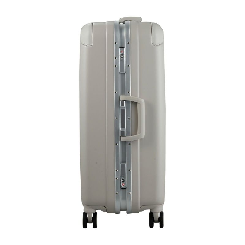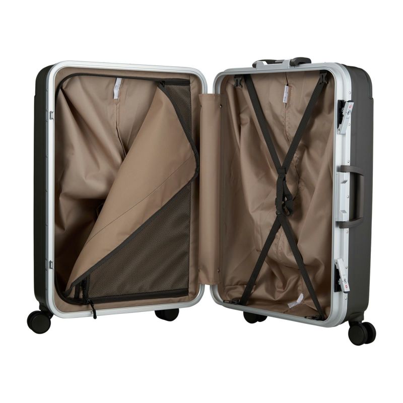 フレームタイプのスーツケース。ボディには剛性・耐衝撃性がある『ABS樹脂』に、飛行機の窓などにも使われる頑強&軽量素材の『ポリカーボネート』を加えた混合素材を採用。頑強なボディで大切なお荷物を守ります。