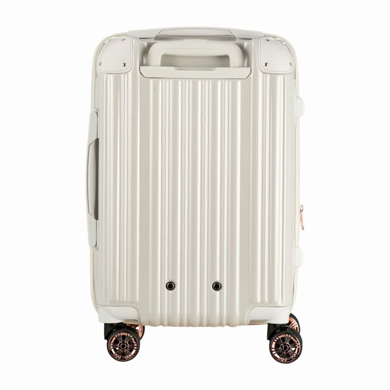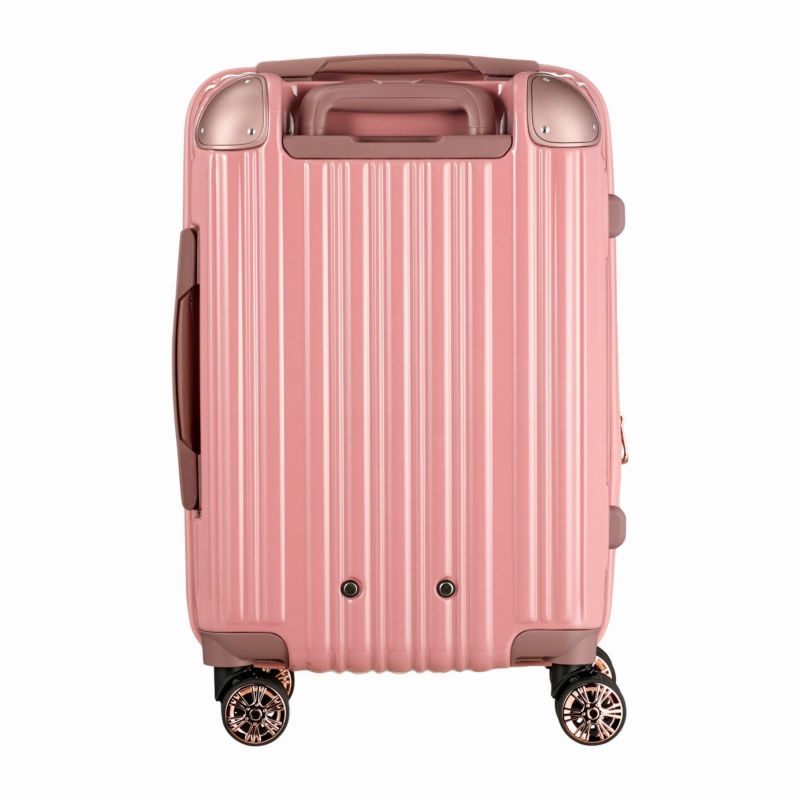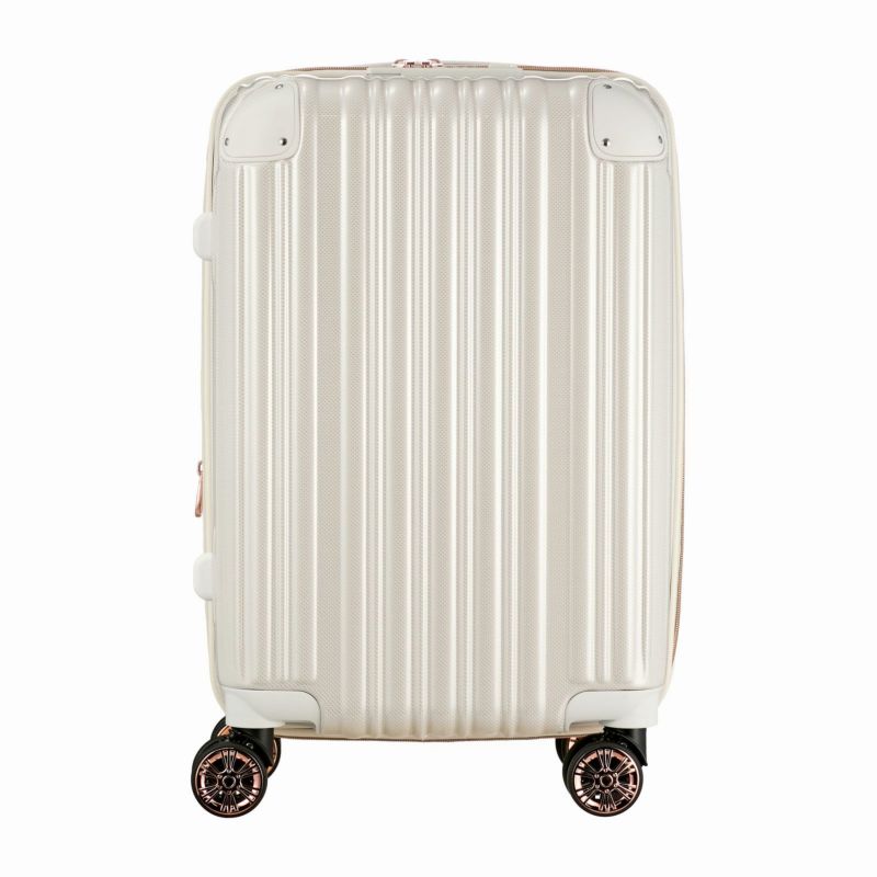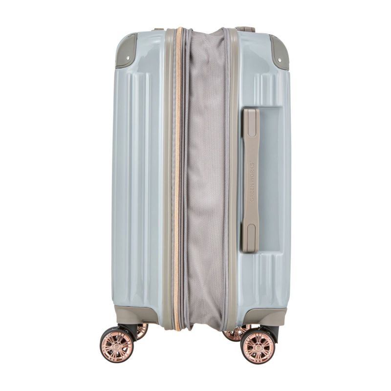 荷物やお土産が増えても安心の『拡張機能』搭載。拡張ファスナーを広げると容量が約7Lアップ。(拡張したまま機内持ち込みはできません。)安定した走行が可能な双輪キャスターは凸凹道でも衝撃を吸収するサスペンション付き。スムーズ&軽やかで快適な走行を実現しました。さらにキャスターに抗菌加工を施しています。