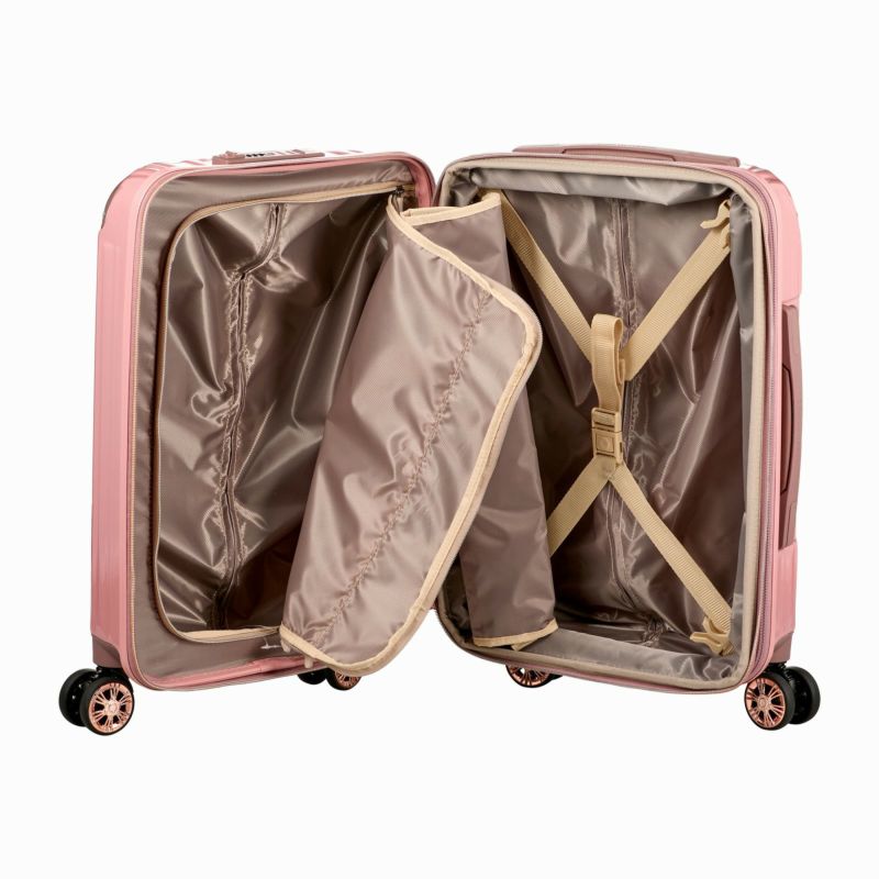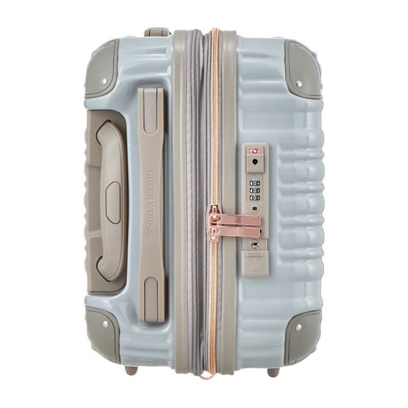 ボディには剛性・耐衝撃性がある『ABS樹脂』に、飛行機の窓などにも使われる頑強&軽量素材の『ポリカーボネート』を加えた混合素材を採用。頑強なボディで大切なお荷物を守ります。フタ側の仕切りはファスナーで閉じられるので、開閉の際に荷物がこぼれる心配がありません。