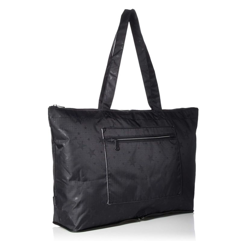 普段使いから旅行用まで、幅広く使える軽いトートバッグ。使わないときはコンパクトに折りたたんでスーツケースやカバンの中に。使いたいときにぱっと広げて使えます。バッグ背面にはスーツケースのキャリーバーに通せるようにキャリーバー通しが付いているので、旅行の際はとっても便利。