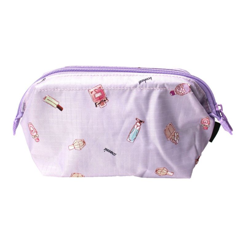 口が大きく四角に開いて中身が取り出しやすい、スタンドポーチ。化粧品や薬などを収納するポーチとして、バッグ内で迷子になりがちな小物類の収納として便利です。