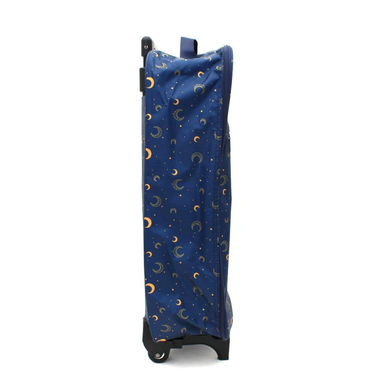 機内持ち込みサイズで旅行から普段使いまで、幅広く使える軽くてシンプルな簡易的なソフトキャリーバッグ。ポリエステル素材で丈夫。フタが大きく全開するので出し入れしやすい。使わない時は台座を取り外してコンパクトに畳むことができるので小スペースで収納OK 。キャリーバーは収納するか伸ばすかの2段階。