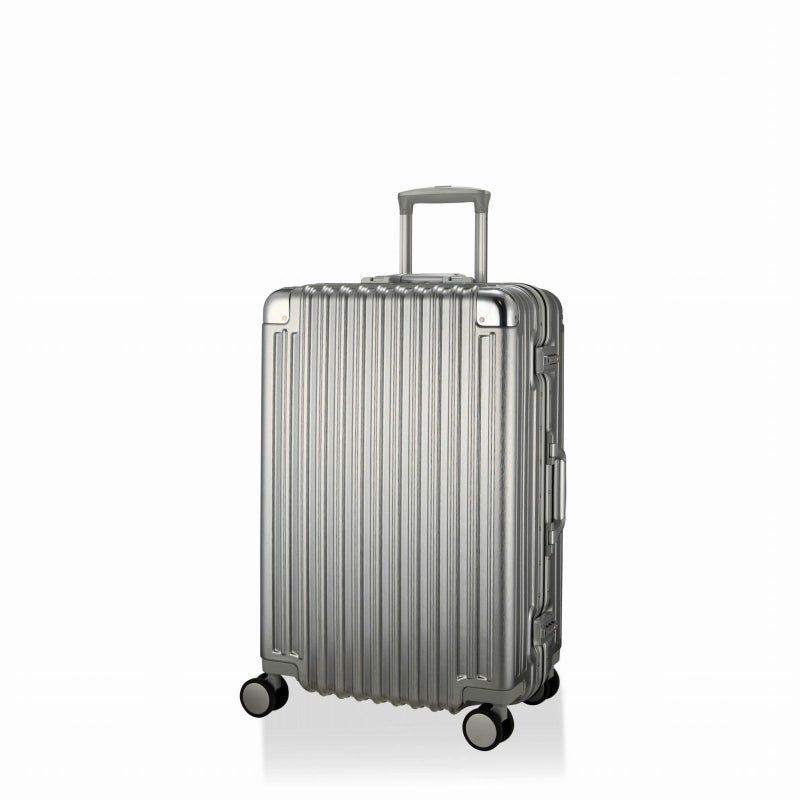 フレームタイプ 静音キャスター ダイヤルロック TSロック 5年保証 スーツケース Mサイズ 66L アルミ調 TRIDENT TRI1030-60