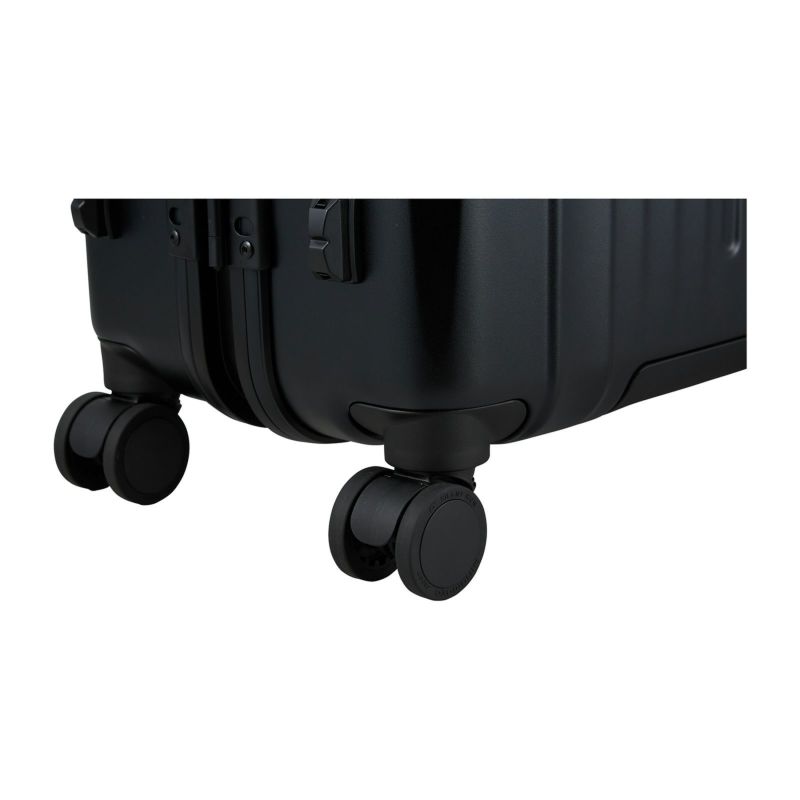 キャスターは、日本メーカーの日乃本錠前製の静音キャスターを採用。早朝や夜間、静かな場所でのゴロゴロ音も気にすることはありません。ダブルキャスターなので凹凸の多い路面でも安定した走行が可能です。ストッパー付きなので、電車等に乗った際にスーツケースが転がっていく心配がありません。