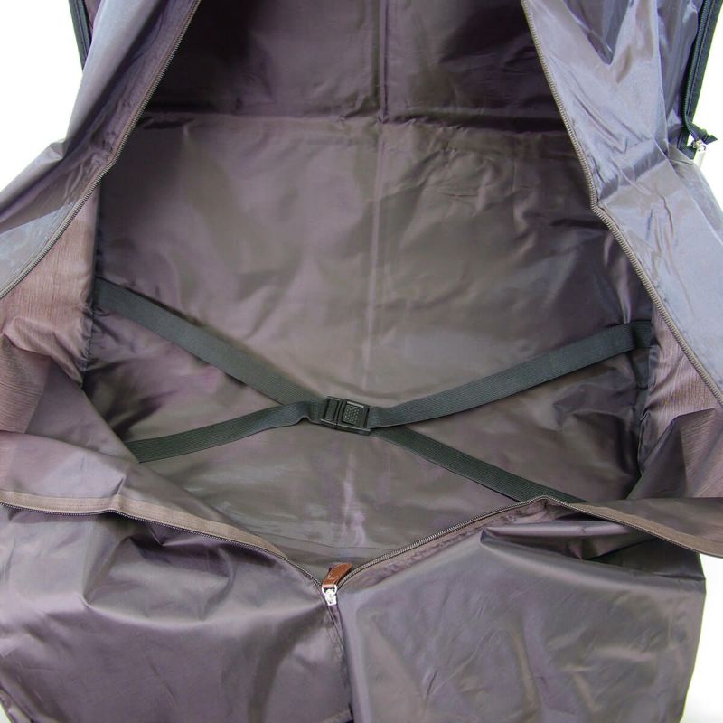 また、大きく開くファスナーはスーツの出し入れがしやすいです。ハンガーも付属しています。