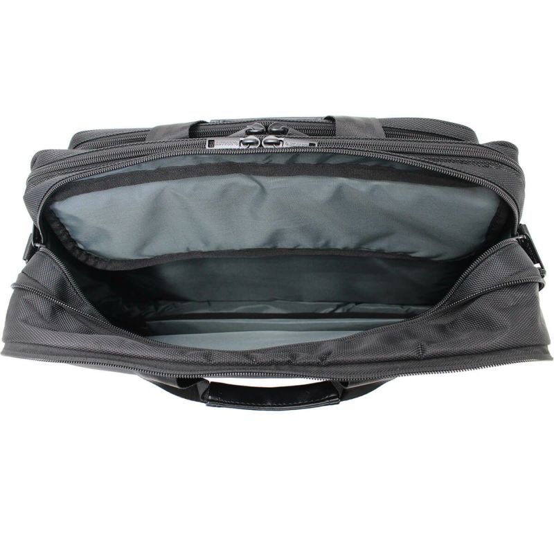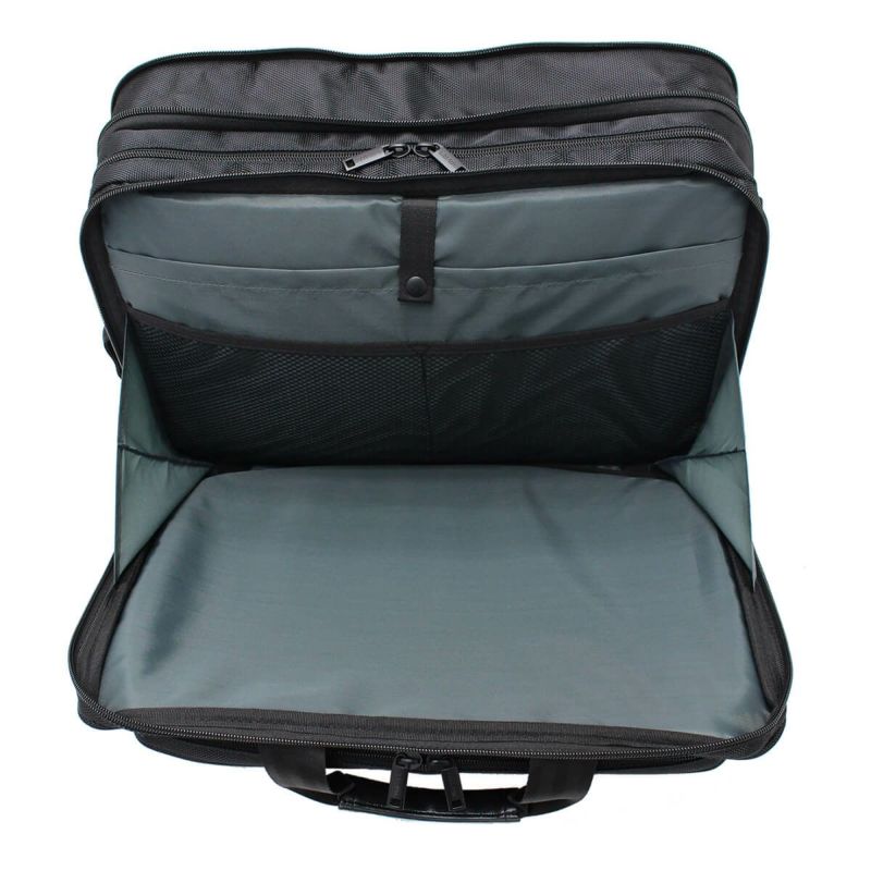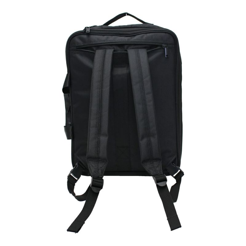 A4ファイル対応サイズ。ノートPCやタブレットの収納に便利なクッション入りポケット付き(保護をお約束するものではありません)。背面側のファスナーをぐるっと一周回すとマチが約1cm拡張。荷物が増えても安心です。背面部分にはスーツケースキャリーバーに装着できるキャリーバー通しがついています。