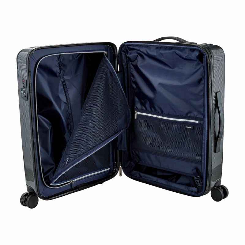 荷物が増えた際に便利な拡張機能付きジッパースーツケース。拡張部分の上部内側にポケットがあるので、すぐに出し入れしたい荷物をいれるのに便利です。