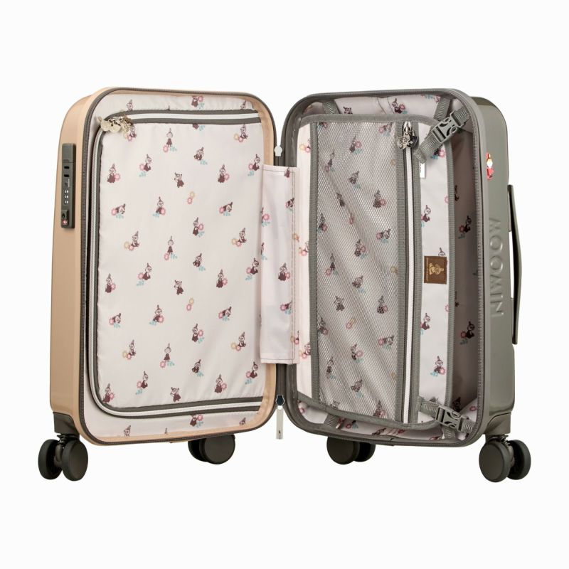 お絵描きを楽しむミイがスーツケース正面にエンボス加工でデザインされています。背面にはミイの後ろ姿!スーツケース側面にはミイの姿のタグがついており、内装の生地はミイの総柄となっています。また、内装のファスナートップもミイの形をしており、細部までこだわったデザインです。スーツケース本体のカラーも2トーンになっているのもおしゃれ!